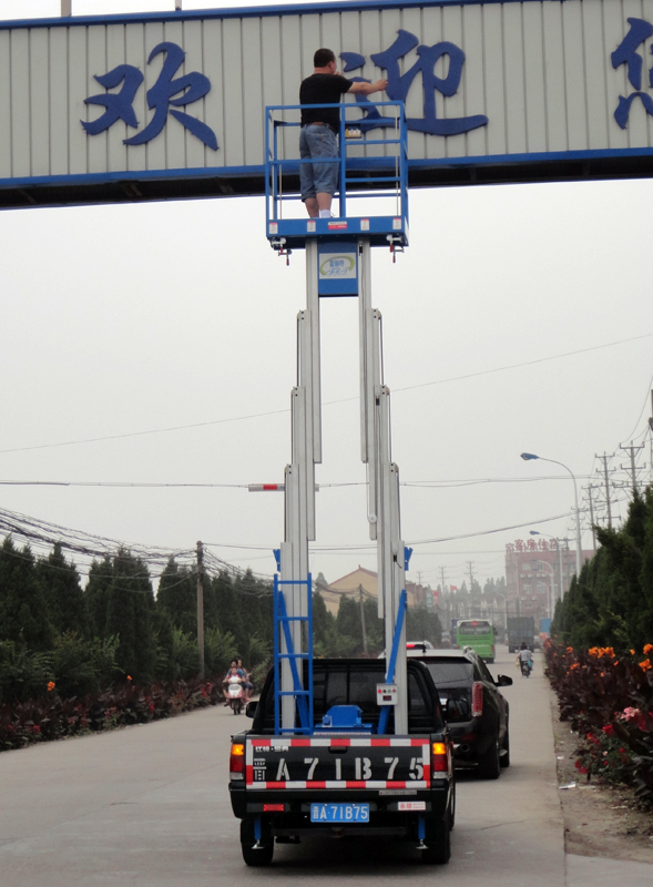 汽車升降機根據(jù)舉升機構(gòu)的可分為剪叉式汽車升降機、鋁合金汽車升降機、曲臂式汽車升降機。剪叉式汽車升降機是集四輪移動與二輪牽引式于一身,采用汽車底盤做平臺底架,利用汽車發(fā)動做動力,既可行駛又可驅(qū)動升降機。剪叉式汽車升降機以小型貨車(汽車)或電瓶車為載體,移動靈活迅速,操作簡單,作業(yè)范圍廣。車載剪叉式升降機采用剪式升降結(jié)構(gòu),剪叉結(jié)構(gòu)采用優(yōu)質(zhì)矩形錳鋼管制作,整體強度高,載重量大,升降穩(wěn)定性好,廣泛用于城建、油田、交通、市政、室外廣告等行業(yè)。